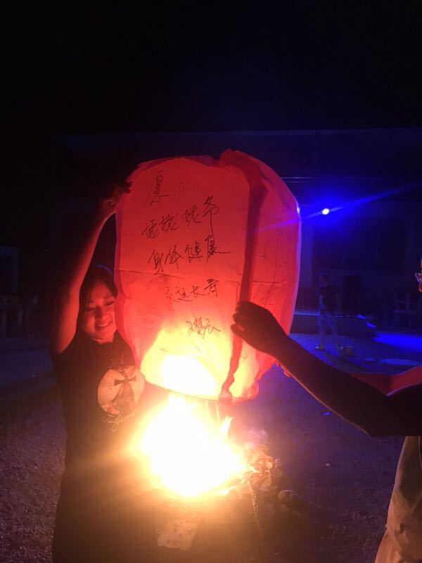 篝火晚會可是本次團建中“小芯”最期待的環(huán)節(jié)呢!大家圍坐在農家小院,點燃篝火,伴著美妙的音樂,放飛寫滿自己心愿的孔明燈。